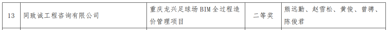 “重慶龍興足球場BIM全過程造價管理項目”榮獲綜合BIM技術應用二等獎