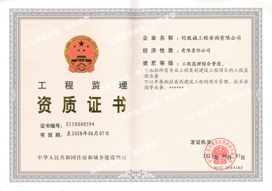 深耕工程咨詢行業(yè)20年,同致誠始終堅(jiān)持“全員參與 誠信務(wù)實(shí) 科學(xué)嚴(yán)謹(jǐn) 持續(xù)改進(jìn)”的質(zhì)量方針,持續(xù)加強(qiáng)資質(zhì)體系建設(shè),現(xiàn)已擁有工程監(jiān)理綜合資質(zhì)、工程招標(biāo)代理甲級(jí)、工程造價(jià)咨詢甲級(jí)、工程咨詢(建筑)甲級(jí)資信、工程咨詢(市政公用工程)甲級(jí)資信、政府采購代理機(jī)構(gòu)甲級(jí)、城鄉(xiāng)規(guī)劃編制乙級(jí)、中央投資項(xiàng)目招標(biāo)代理乙級(jí)、農(nóng)田工程建設(shè)勘測設(shè)計(jì)單位乙級(jí)等10余項(xiàng)行業(yè)專項(xiàng)資質(zhì)。