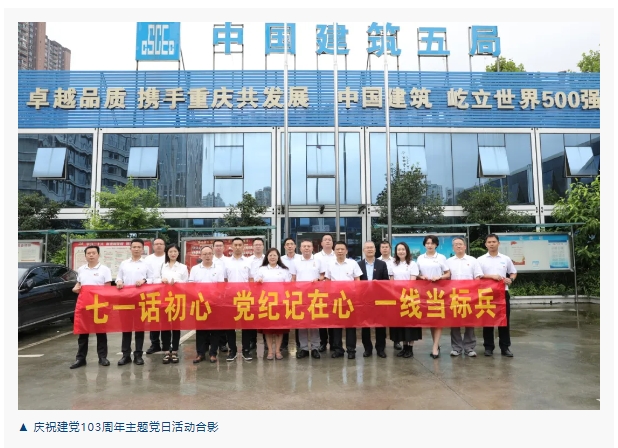 為慶祝中國共產黨成立103周年,深入學習貫徹習近平總書記關于加強黨的紀律教育的重要論述,推動黨紀學習教育走深走實,在七一建黨節之際,同致誠工程咨詢有限公司聯合重慶市招標投標協會、重慶市江南城市建設發展(集團)有限公司、中建五局江南隧道及茶黃路工程項目及重慶圣訊建設工程咨詢有限公司以黨建共建的形式于6月28日共同舉辦了“七一話初心、黨紀記在心、一線當標兵”慶祝建黨103周年主題黨日活動。