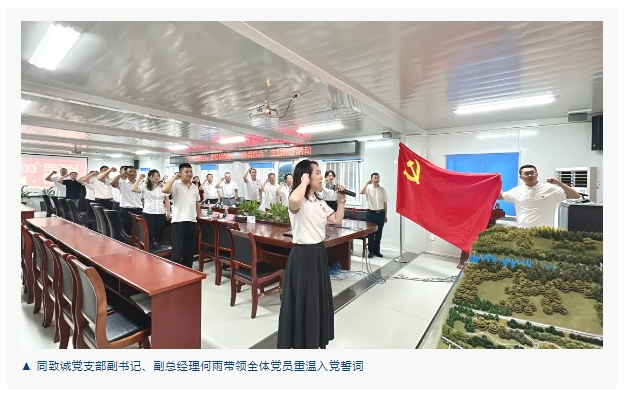 隨后,大家前往項目部開展主題座談會。會前,大家面對鮮紅的黨旗,莊嚴地舉起右手,用洪亮的聲音重溫入黨誓詞,彰顯永恒初心,表達出身為新時代黨員的責任和擔當。在主題交流環節,與會各單位領導、黨員代表結合自身實際,圍繞崗位職責、黨員初心、黨紀學習等展開交流,分享感悟,暢談體會。