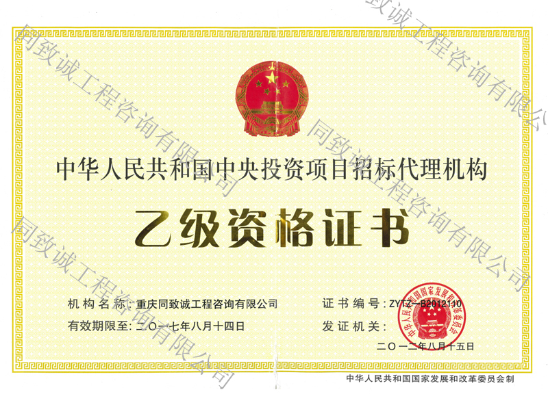中央投資乙級資格證書