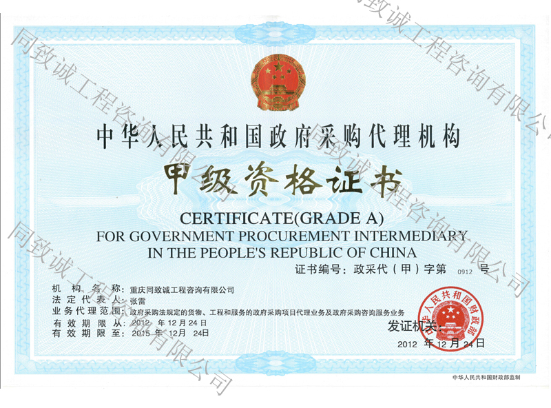 政府采購甲級證書