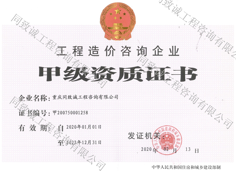 工程造價咨詢甲級證書