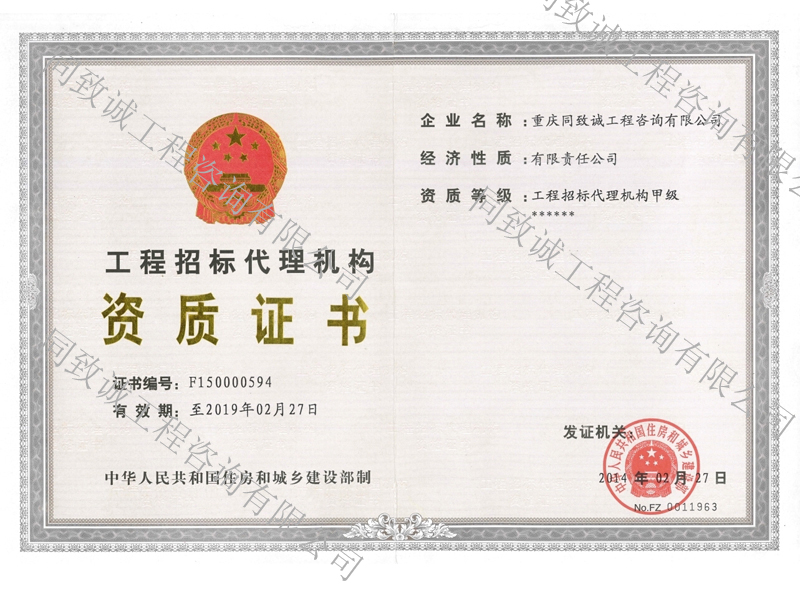 工程招標代理甲級甲級正本