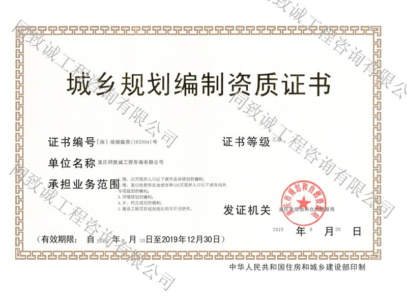 城鄉規劃編制資質證書