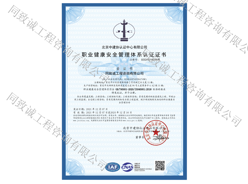 職業健康安全管理體系認證證書