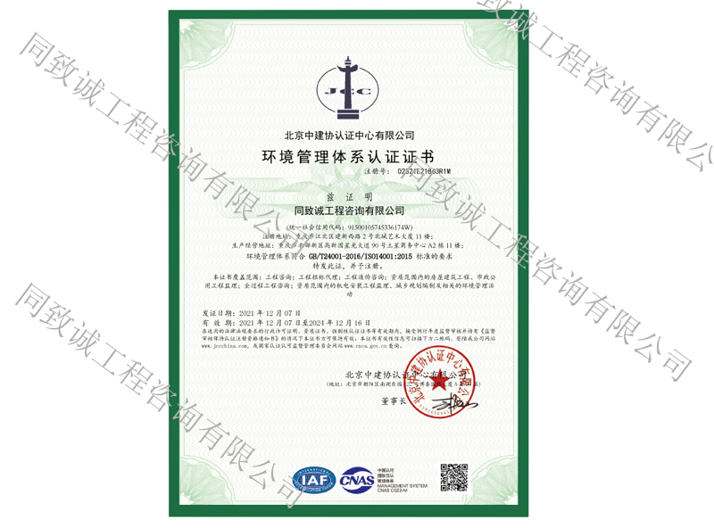 環境管理體系認證證書