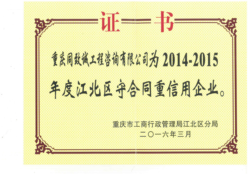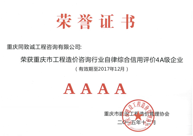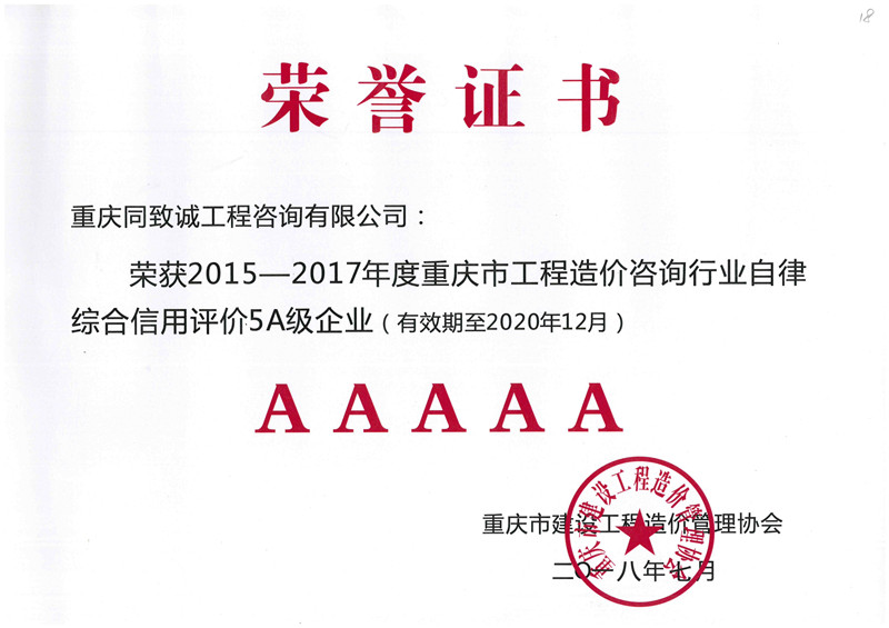 2015年-2017年度重慶工程造價咨詢綜合信用5A單位