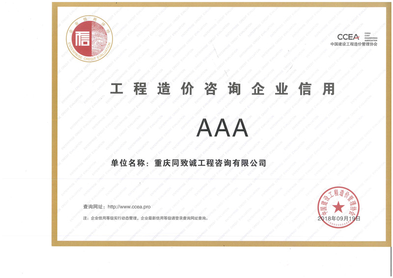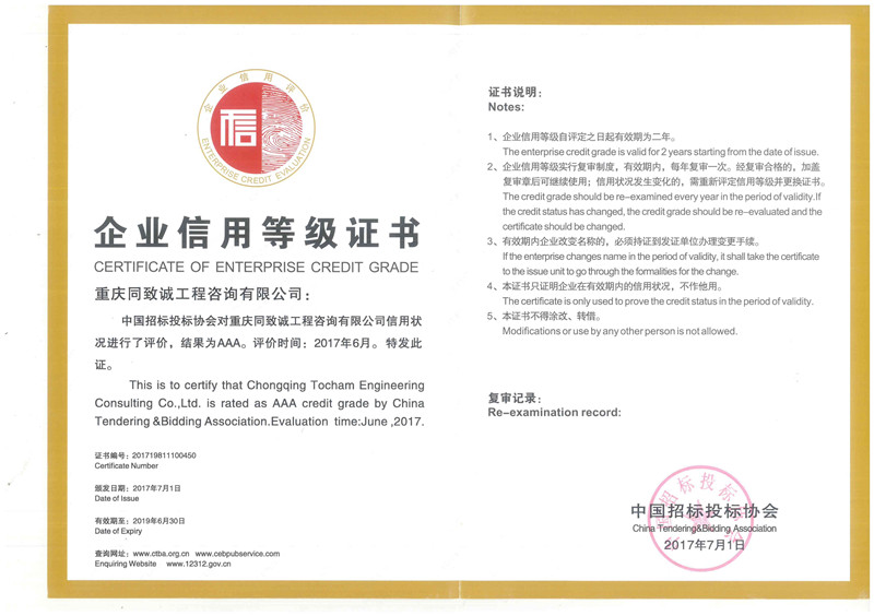 中國招標(biāo)投標(biāo)協(xié)會AAA級企業(yè)信用等級