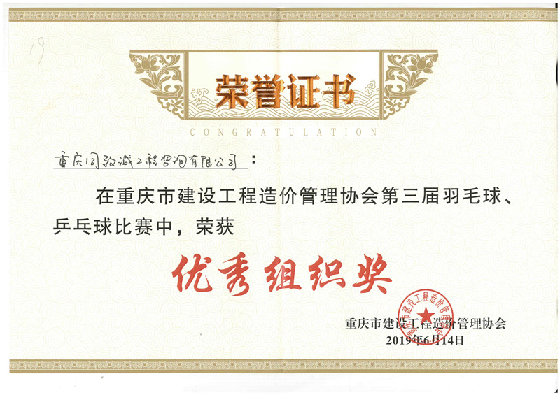 重慶造價協(xié)會第三屆羽毛球優(yōu)秀組織獎