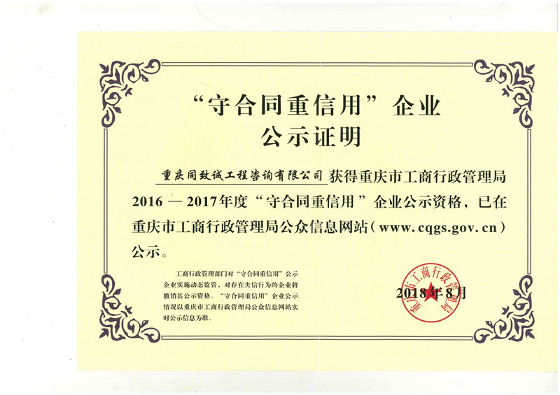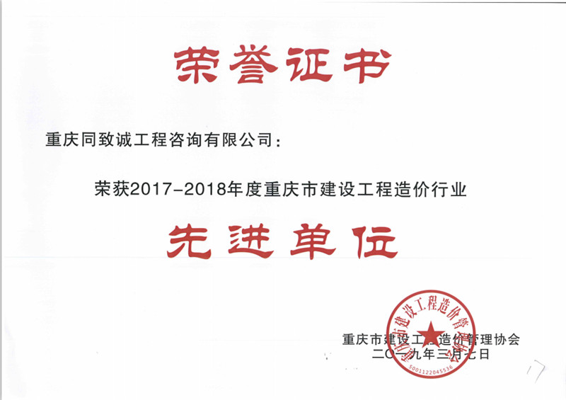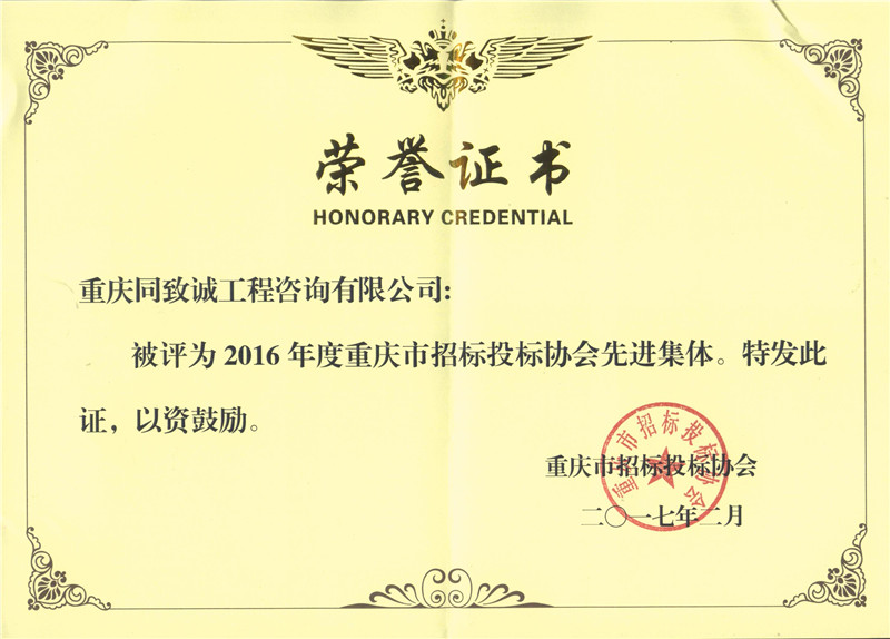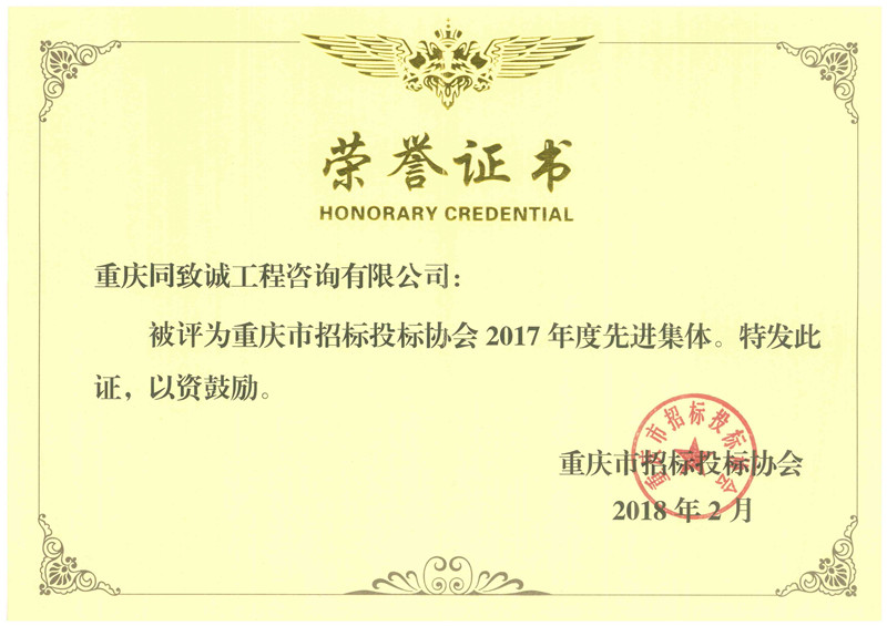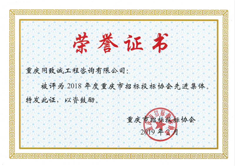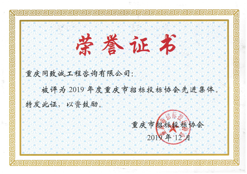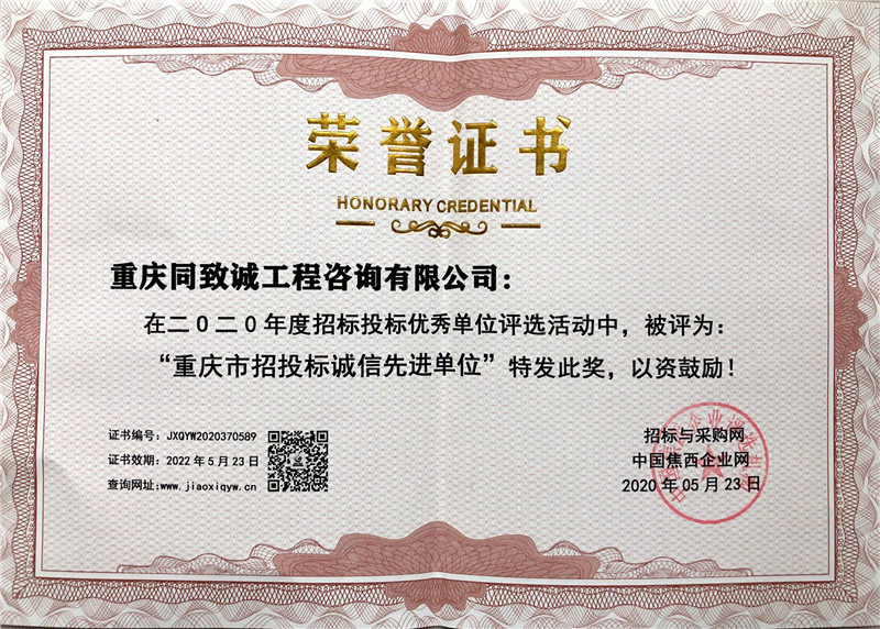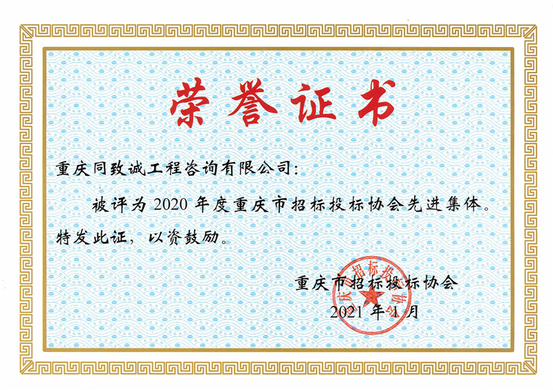 2020年度重慶市招投標(biāo)誠信先進(jìn)單位