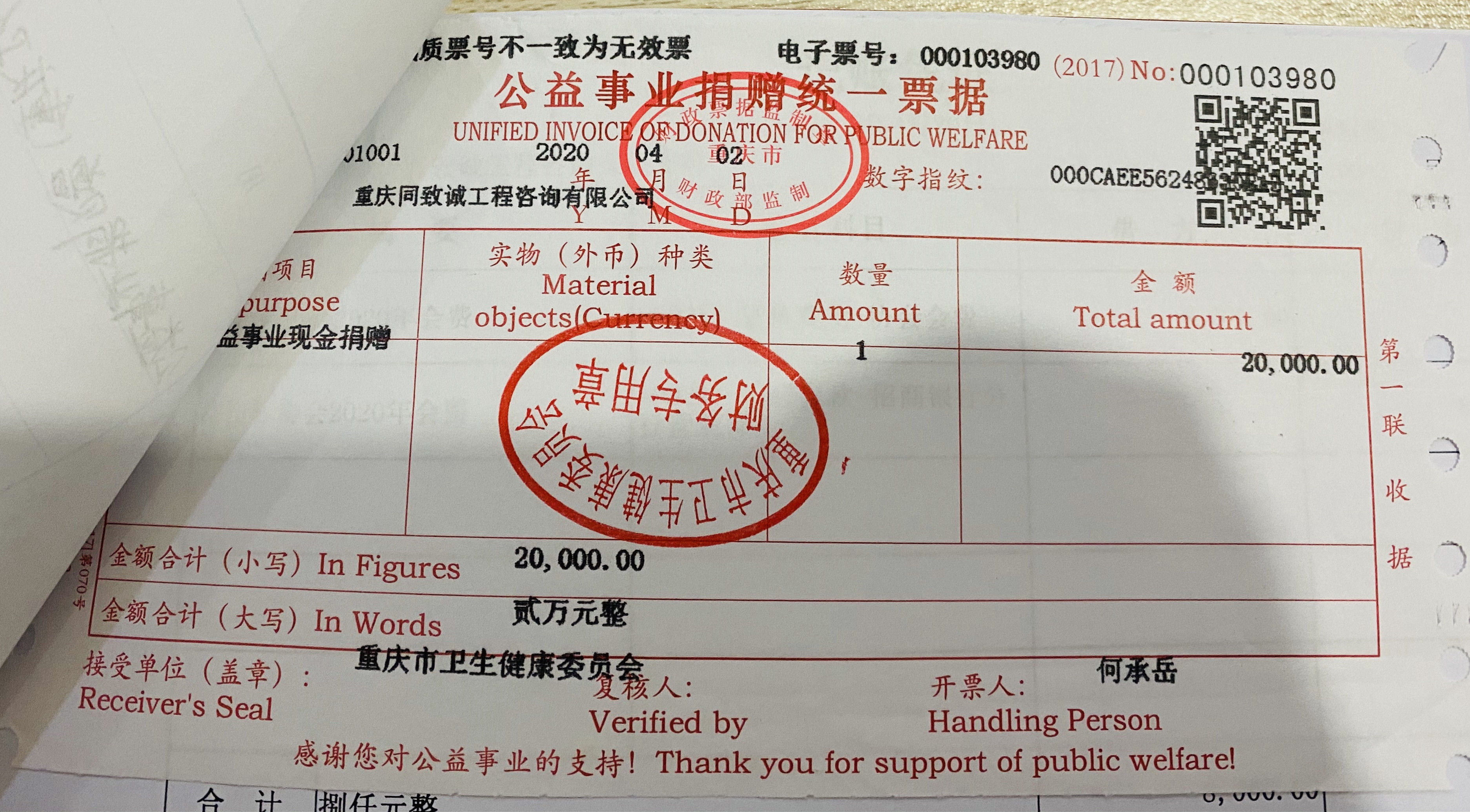 圖 | 為重慶市衛生健康委員會愛心捐贈的票據