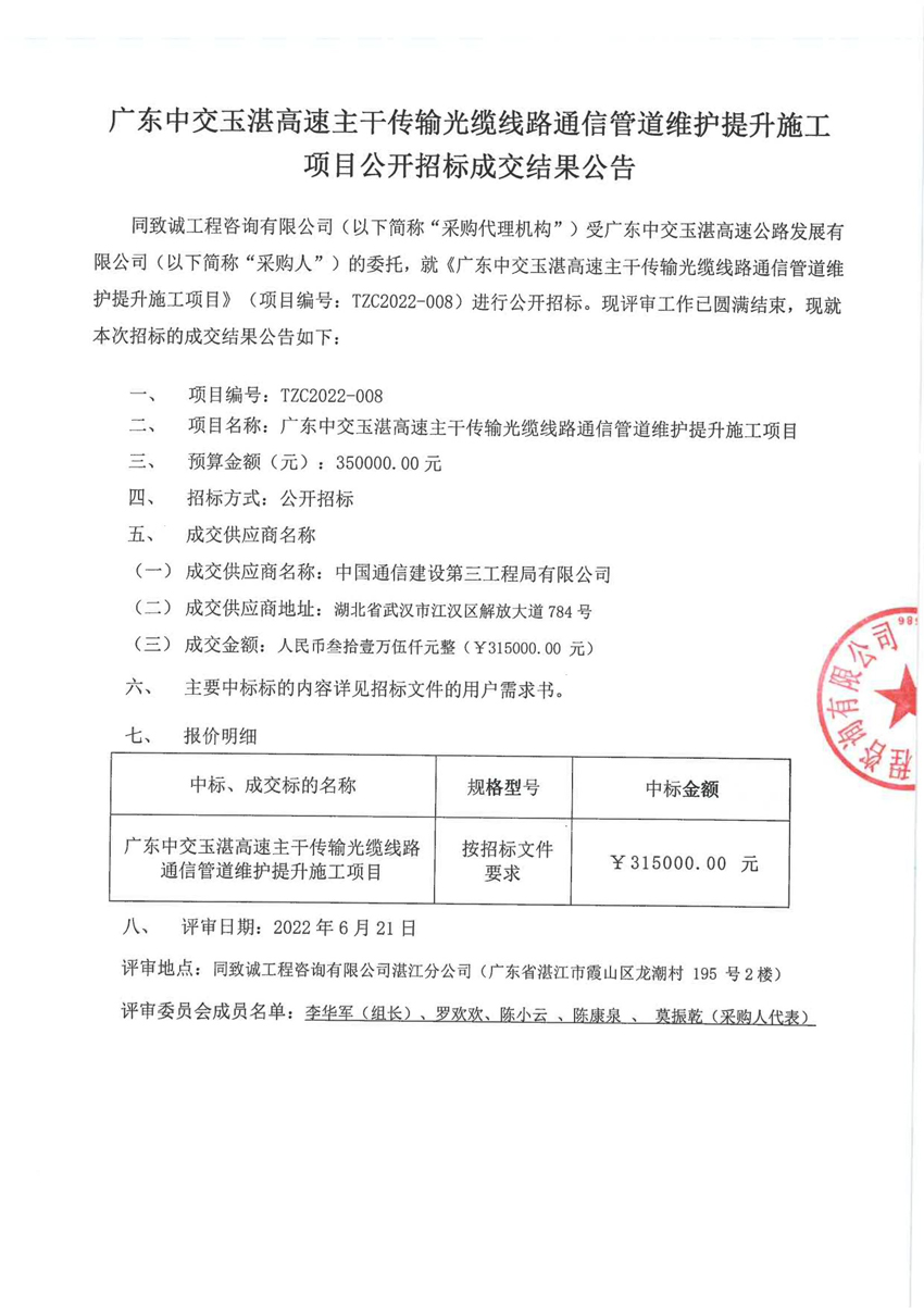 廣東中交玉湛高速主干傳輸光纜線路通信管道維護提升施工項目