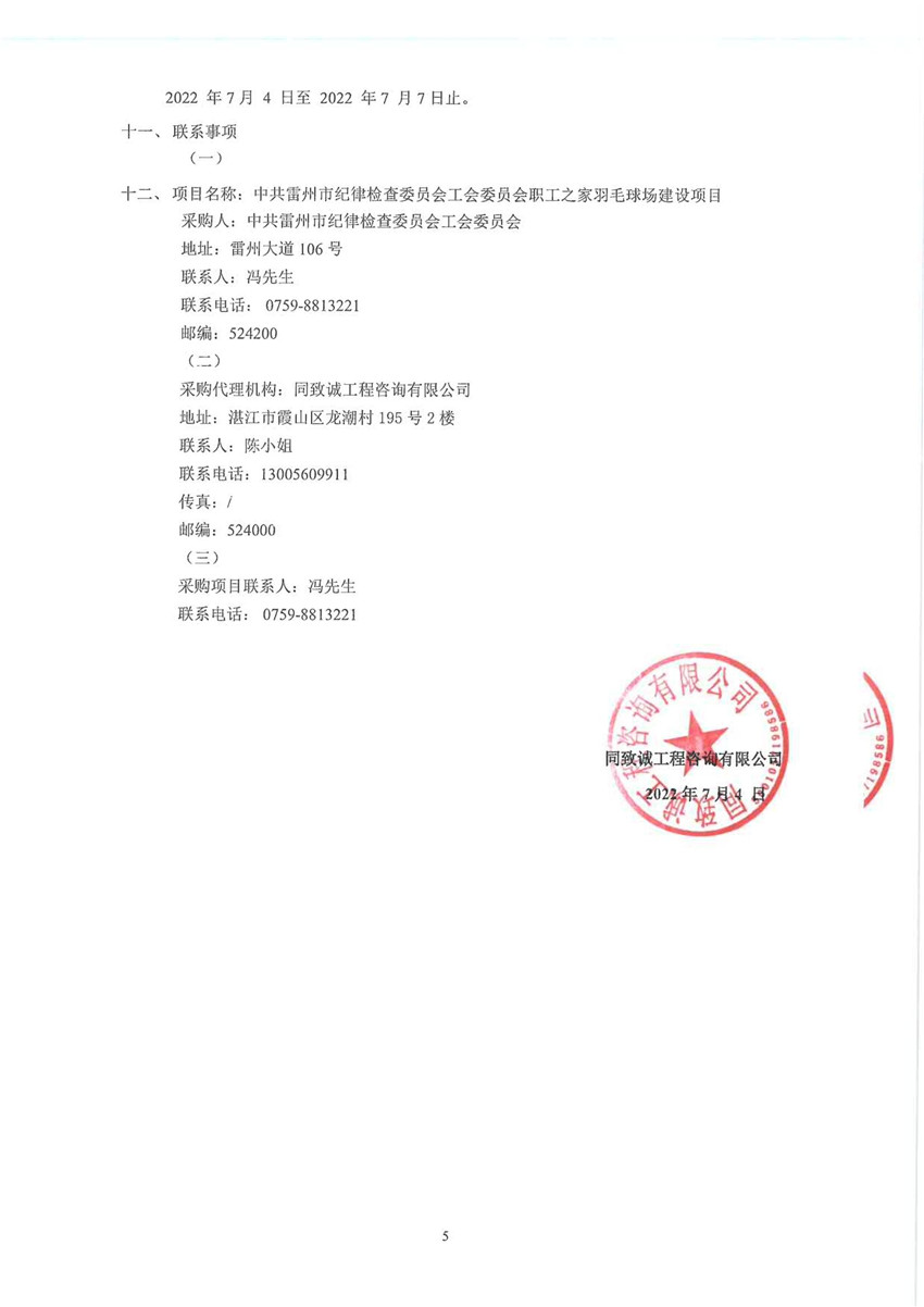 中共雷州市紀律檢查委員會工會委員會職工之家羽毛球場建設項目