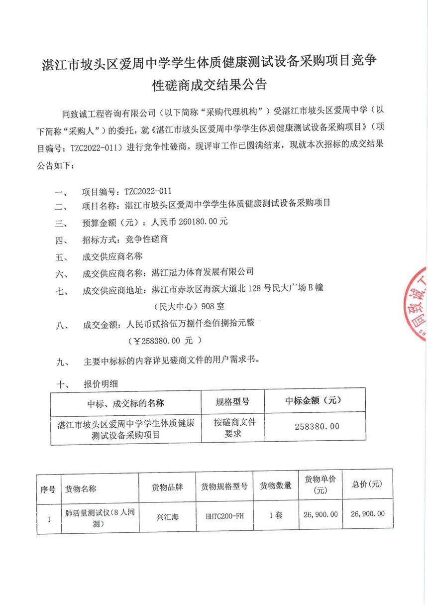 湛江市披頭區(qū)愛周中學(xué)學(xué)生體質(zhì)健康測試設(shè)備采購項目