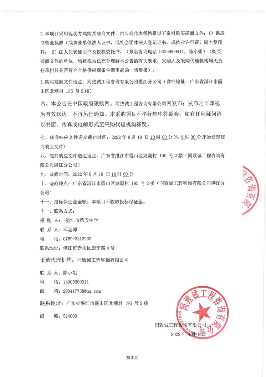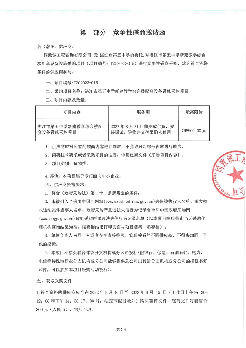 湛江市第五中學(xué)新建教學(xué)綜合樓配套設(shè)備設(shè)施采購項目