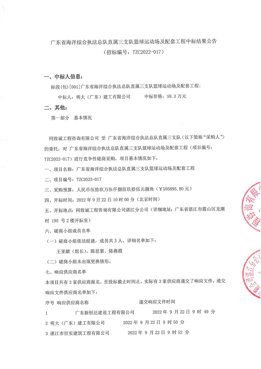 廣東省海洋綜合執(zhí)法總隊(duì)直屬三支隊(duì)籃球運(yùn)動(dòng)場(chǎng)及配套工程